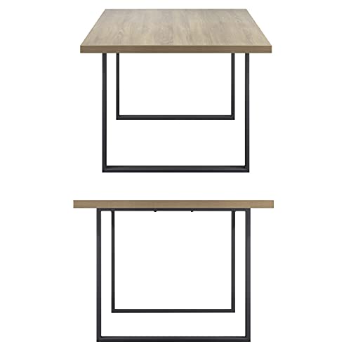 Piano in MDF effetto rovere o noce, gambe a forma di U in acciaio nero o con finitura nera o legno.