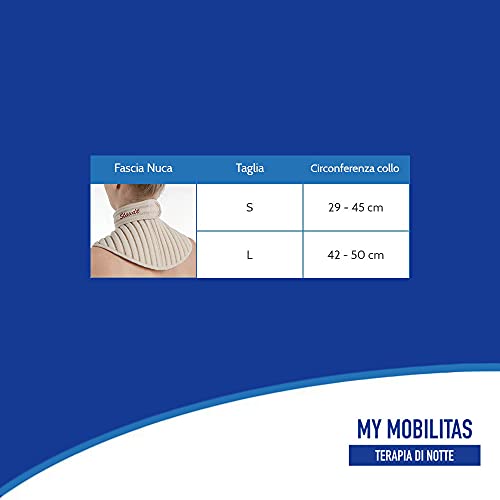 MY MOBILITAS FASCIA NUCA - la fascia nuca genera un massaggio che favorisce l'irrorazione sanguigna ed il rilassamento dei muscoli, contrastando dolori e rigidità. Va indossata durante la notte. Indicata per: Problemi al collo e alla spalla, Dolore al collo, Mal di testa conseguente a patologie cervicali, Tensione, Affaticamento.