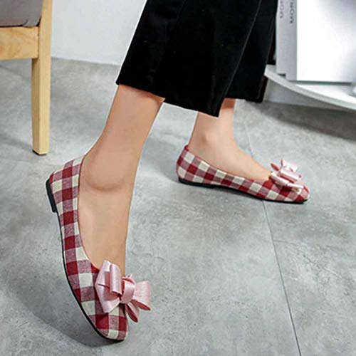Mocassini Senza Schienale da Donna Moda Carino Papillon Plaid in Tela Punta Quadrata Antiscivolo su Scarpe Singole Piatte Fondo Morbido Scarpe Casual Femminili