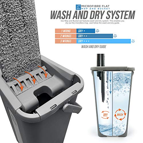 Set di mocio piatto e secchio per pavimenti, mocio facile da strizzare, con 2 pezzi di ricambio in microfibra, per tutti i tipi di pavimenti