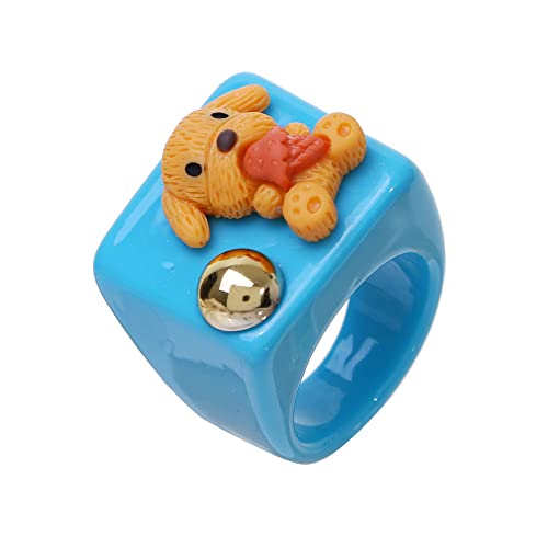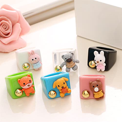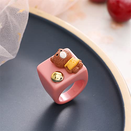 Anello quadrato in acrilico colorato con animale del fumetto per le donne coreano in resina orso cane coniglio anello largo moda gioielli moda