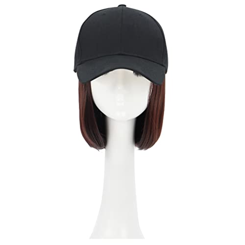 Moda Corto Dritto Bob Parrucca Estensione per capelli sintetici resistenti regolabili Parrucca con cappello da baseball Cappello per parrucchino per Donna Signora Ragazza