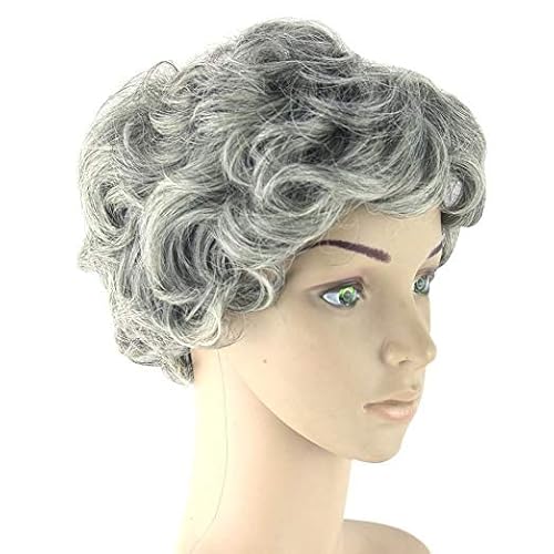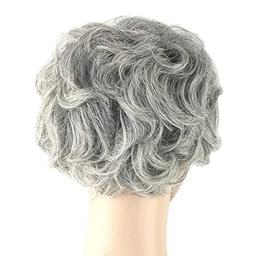 Moda donna breve ricci ondulati nonna grigio Cosplay parrucche quotidiane indossando