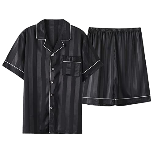 Moda Estate Manica Corta Pantaloni Corti Pigiama Blu Uomo Vestiti Da Notte Collare Turn-Down Leisure Lusso Ice Silk Homewear Come mostrato5 L per 50-68kg