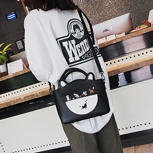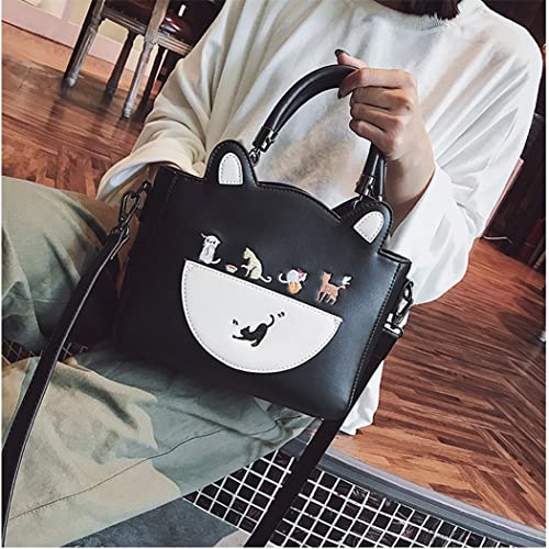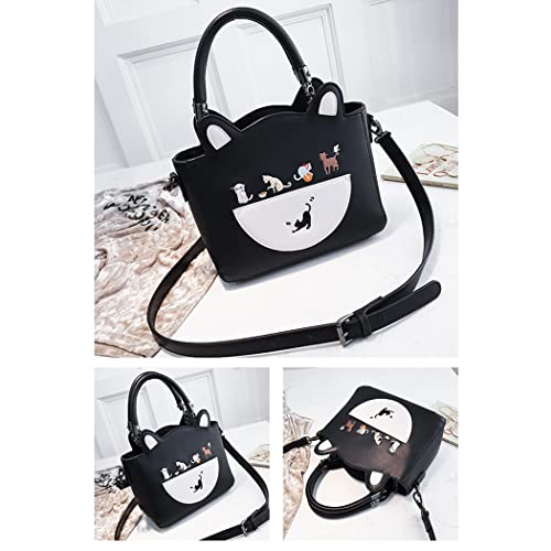 H.S.G.K Moda Inverno Gatto Crossbody Borsa A Tracolla Grande Capacità Morbida Pelle Borsa Nero, 28x20x10cm, Nero, Large