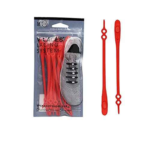 Moda 14 Pcs Lazy Silicone Lacci per scarpe Tie-Free Laces Silicone Rotondo Scarpe Lacci Sneakers Lacci Uomini Donne Lacci Arcobaleno, Rosso, Taglia unica
