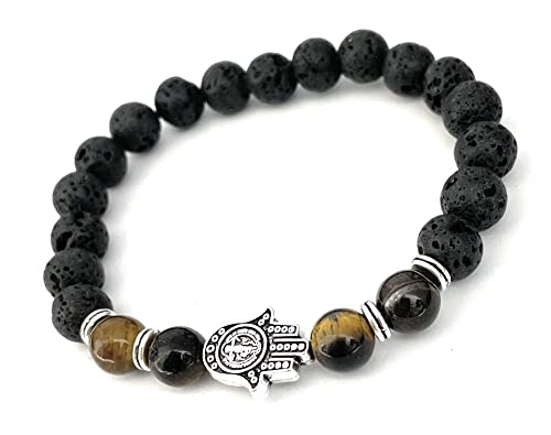 MODA MavillA Bracciale a molla misura regolabile (Mano Fatima pietra lavica occhio tigre)