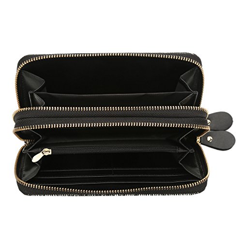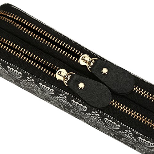 Moda Portafogli Lungo con Zip Da Donna Borsellino Portamonete Wallet Pochette Tela Regalo per Donna- Très Chic Mailanda (Nero Elefante)