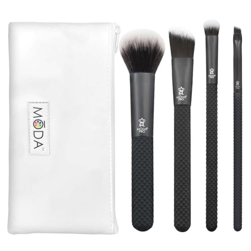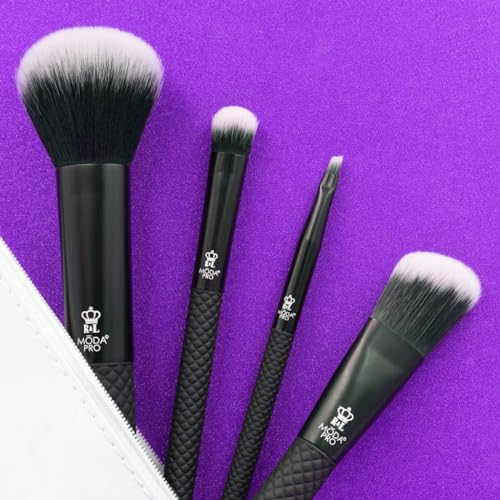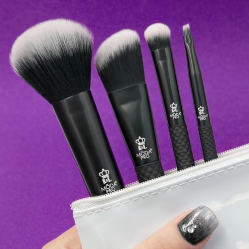 MODA Royal & Langnickel Pro - Set di 5 pennelli da trucco con custodia, include - multiuso in polvere, fondotinta angolare, ombreggiatura a cupola e eyeliner angolari, nero