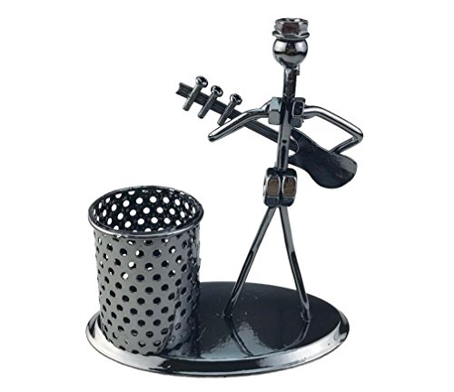Moda unico Iron Art strumento musicale Performer con cappello musicista figura contenitore della penna Holder Pencil Cup for home office decorazione scrivania Toy Gift Electric guitar