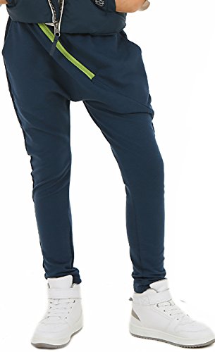 ModaFresca Solvera Ltd Baggy Pantaloni sportivi da bambina con chiusura lampo per autunno primavera estate scuola camuflage militare o tinta unita 116-158, Blu, 116 cm