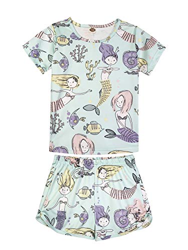 ModaIOO Ragazze Sirena Manica Corta per Bambini 2 Pezzi Pigiama Set (8017,Mermaid,100)