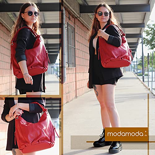 Modamoda de Borsa A Tracolla Da Donna, Pelle Italiana, Nappa Z18, Colore:Bordeauxviolett Leder