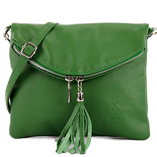 Modamoda de - T139 - Borsa a tracolla piccola in nappa, fogliame verde, siehe Beschreibung