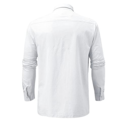 Modaworld Camicia da Uomo a Maniche Lunghe in Lino, Bordi piegati, con Taschino sul Petto,Classiche Risvolto,Taglie Forti, Lavoro Shirts (White, XL)