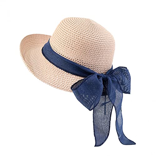 Modaworld Cappelli da Sole per Donna Cappello da Spiaggia in Paglia di Bowknot a Tesa Larga a Tesa Larga Cappello Pieghevole Pieghevole UPF UV Floppy