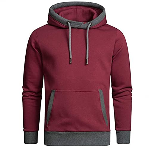 Modaworld Felpe con Cappuccio da Uomo Felpa con Cappuccio Slim Fit Maniche Lunghe Pullover Caldo Patchwork Sweatshirt con Tasca Sportive da Uomo