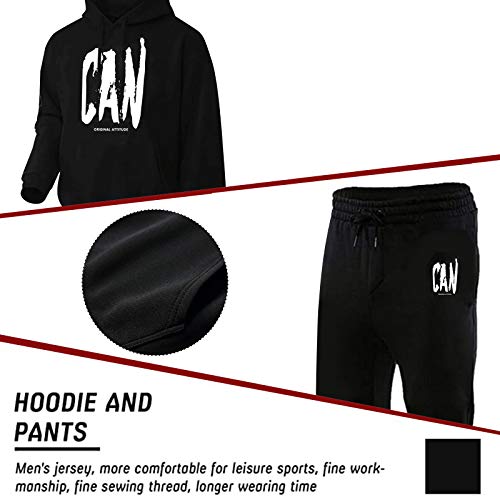 Modaworld Tuta da Uomo con Cappuccio, Completo Felpa e Pantaloni, Sportiva Uomo 2 Pezzi Felpa con Cappuccio a Maniche Lunghe + Pantaloni con Coulisse (A-Black, M)