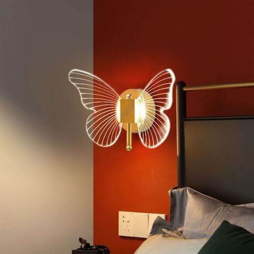 [Stile moderno]: lampada da parete creativa a farfalla, design dalla forma unica, colore uniforme e delicato, semplice ma non semplice, corpo dorato e design a spirale a farfalla, che evidenzia una bellezza pura estremamente semplice, elegante e discreta, adatta a qualsiasi stile decorativo.