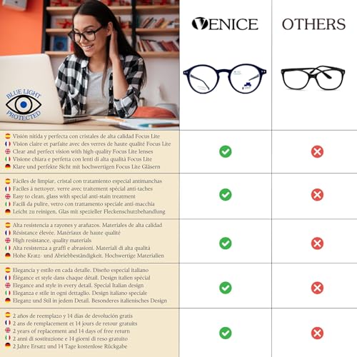 ️ MASSIMA RESISTENZA A GRAFFI, COLPI E CADUTE: Gli occhiali Venice Eyewear sono progettati per affrontare le avversità quotidiane. Con oltre 30 anni di esperienza, ti offriamo 2 ANNI DI SOSTITUZIONE in caso di qualsiasi difetto e 14 GIORNI DI RESO GRATUITO se non sei completamente soddisfatto. Se hai dubbi o hai bisogno di assistenza, il nostro servizio clienti sarà felice di aiutarti in qualsiasi cosa tu abbia bisogno.