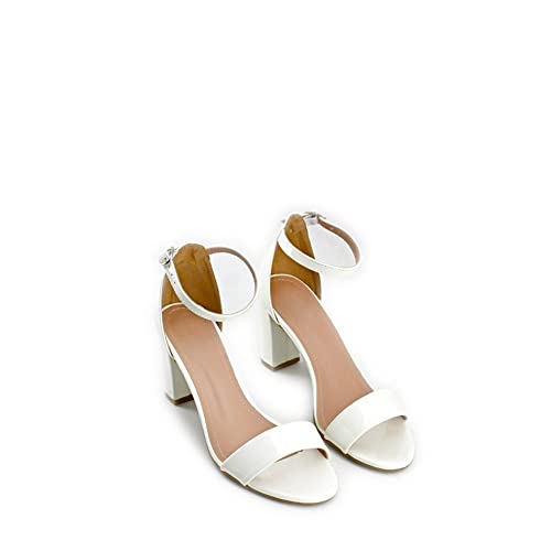 Modelisa - Sandali tacco largo con tallone fibbia bracciale al collo donna, bianco, 38 EU