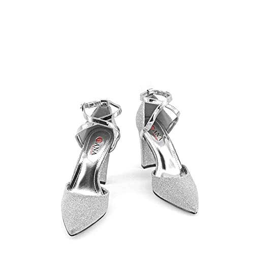 MODELISA - Scarpe A Tacco Ampio Salone Glitter Punta Fibbia Caviglia Donna, argento, 37 EU