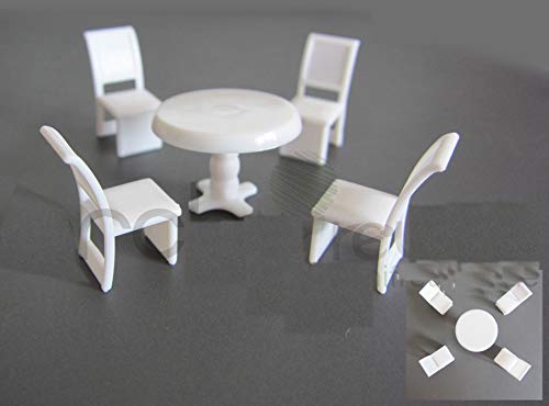 5er Set Modell Tisch Set mit 4 Stuhl für Modellbau 1:50, Modelleisenbahn Spur 0