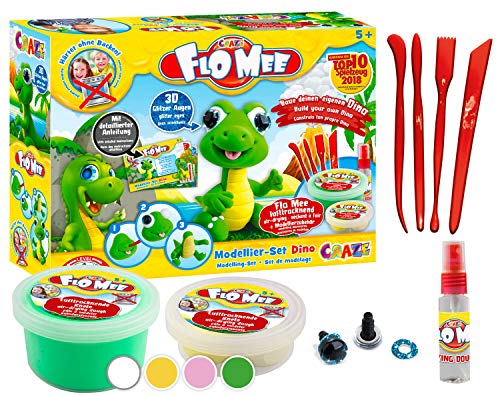 Contenuto: Flo Mee in 4 colori diversi, strumento di modellazione, occhi glitter 3D e un manuale