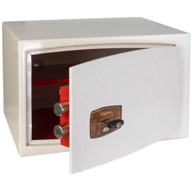 Cassaforte a mobile per Hotel della Technomax serie “Hotel” modello 730/ACH Apertura con chiave a doppia mappa Scarica scheda tecnica Caratteristiche Tecniche: Spessore porta: 6 mm Taglio laser. Spessore corpo: 2,5 mm. Serratura di sicurezza con chiave a doppia mappa (2 chiavi in dotazione). Estrazione della chiave impossibile a catenacci rientrati. Ripiano interno. Tappetino sulla base. Fori di ancoraggio sullo schienale e sulla base (2+2). Tasselli per fissaggio in dotazione. Verniciatura a polvere termoindurente color sabbia.