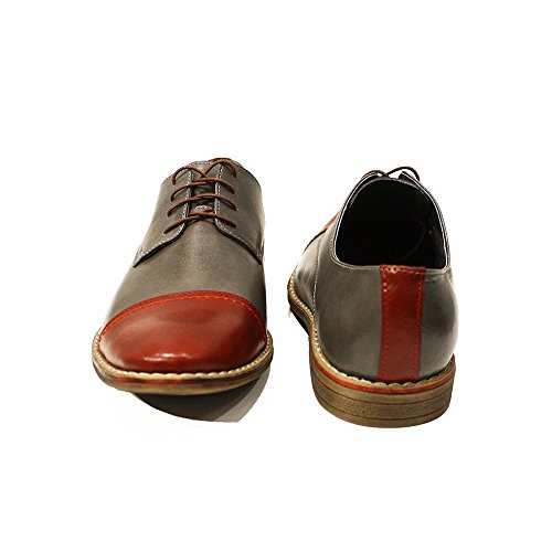 Modello Cernusco sul Naviglio - EU 39 - US 6 - UK 5-24,7 cm - Handmade Italiano da Uomo in Pelle Colore Grigio Scarpe da Sera - Vacchetta Pelle Morbido - Allacciare