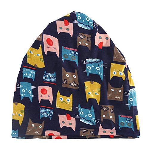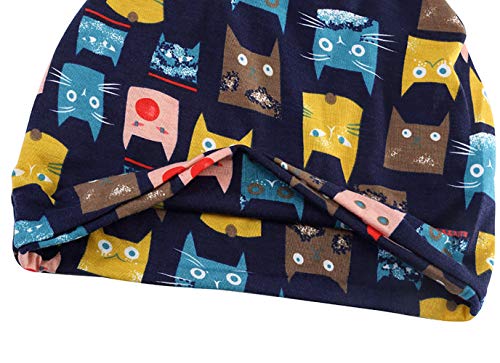 Modello di gatto Slouchy Beanie Hat Chemo Turbante Copricapo Perdita di Capelli Cotone Skull Cap per le Donne Uomini Marina Militare Taglia unica
