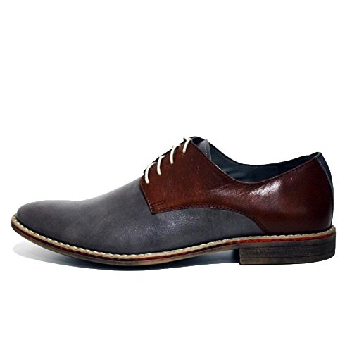 Modello Oristano - EU 45 - US 12 - UK 11-30 cm - Handmade Italiano da Uomo in Pelle Colore Grigio Scarpe da Sera - Vacchetta Pelle Morbido - Allacciare