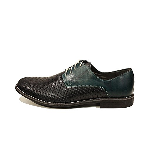 Modello Pancrazio - EU 45 - US 12 - UK 11-30 cm - Handmade Italiano da Uomo in Pelle Colore Nero Scarpe da Sera - Vacchetta Pelle in Rilievo - Allacciare
