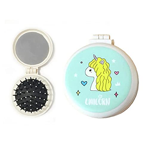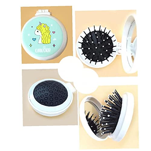Modello Pieghevole di Massaggio Pettine Bello dei Bambini del Fumetto Airbag Air Cushion Pettine Mini Portatile Trucco dello Specchio a Doppio Scopo per Ragazze Bambini (Giallo)