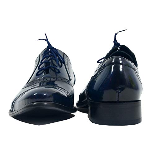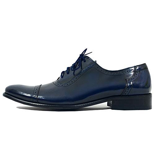 Modello Toeme - EU 43 - US 10 - UK 9-28 cm - Handmade Italiano da Uomo in Pelle Colore Blu Navy Scarpe da Sera - Vacchetta Pelle di Brevetto - Allacciare
