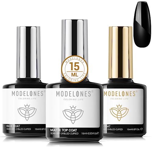 Modelones Base e Top Coat Semipermanente Set 3 x 15ml Top Base Matt Coat Semipermanente Gel Soak Off UV LED Smalti Gel per Unghie Kit Semipermanente Unghie Kit per Manicure