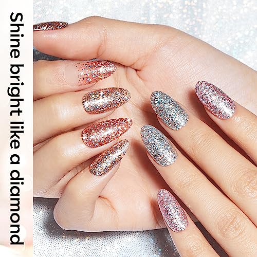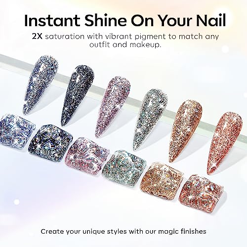 Modelones Smalto Semipermanente, 6 Colori Glitter Argento Brillante Semipermanente Unghie Kit,Smalto per Unghie in Gel UV LED Professionali Kit,Manicure Nail Art