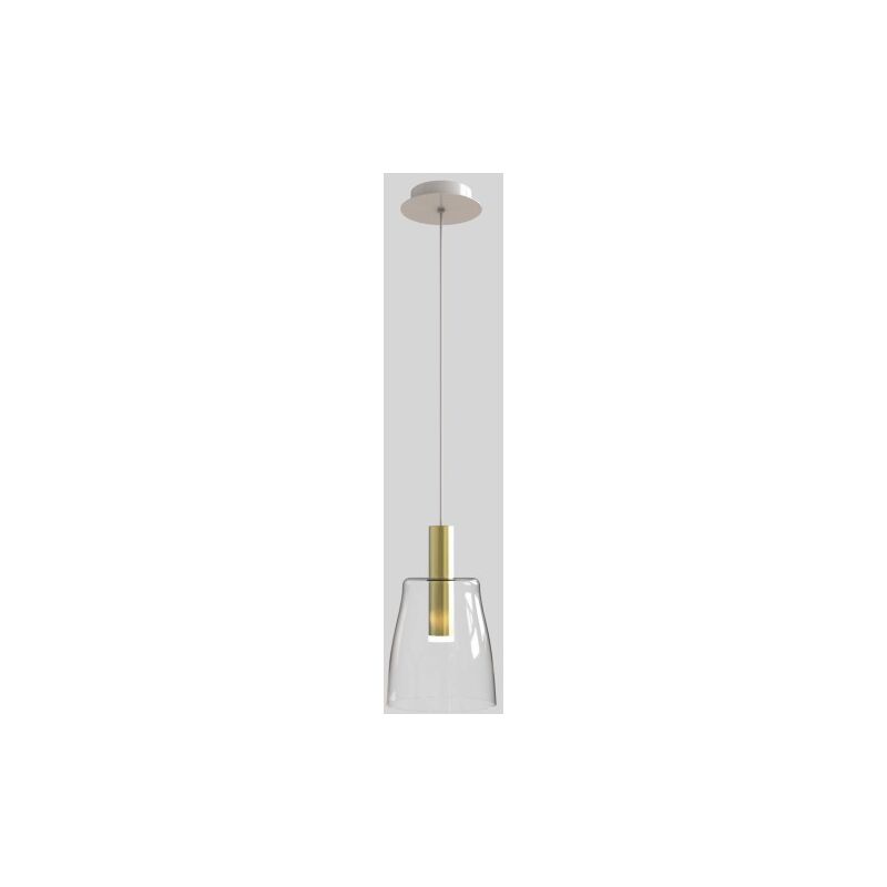 Una famiglia di lampade a sospensione eleganti e minimaliste con paralume in vetro. Le lampade sono disponibili nei colori bianco e oro e in due forme di paralumi. Hanno una sorgente luminosa LED integrata. I prodotti della famiglia possono essere combinati liberamente in una stanza. Le lampade sono destinate al soggiorno, alla sala da pranzo, alla cucina, alla camera da letto, all'ingresso e all'ufficio. Materiale: metallo, vetro Colore base: oro Altezza: 140 Larghezza: 15 Profondità: 15 Dimensioni (altezza/larghezza/profondità): 140x15x15 Peso (netto): 2,10 Colore luce: calda LED integrato: Sì Numero sorgenti luminose: 1 Sorgente luminosa incluso: Sì Numero di sorgenti x base: 1x Flusso luminoso: 260 Lm