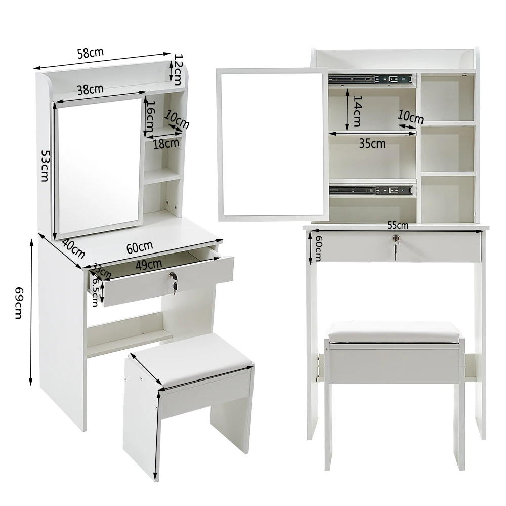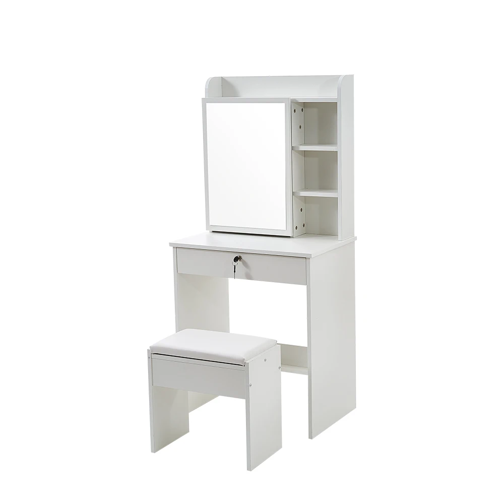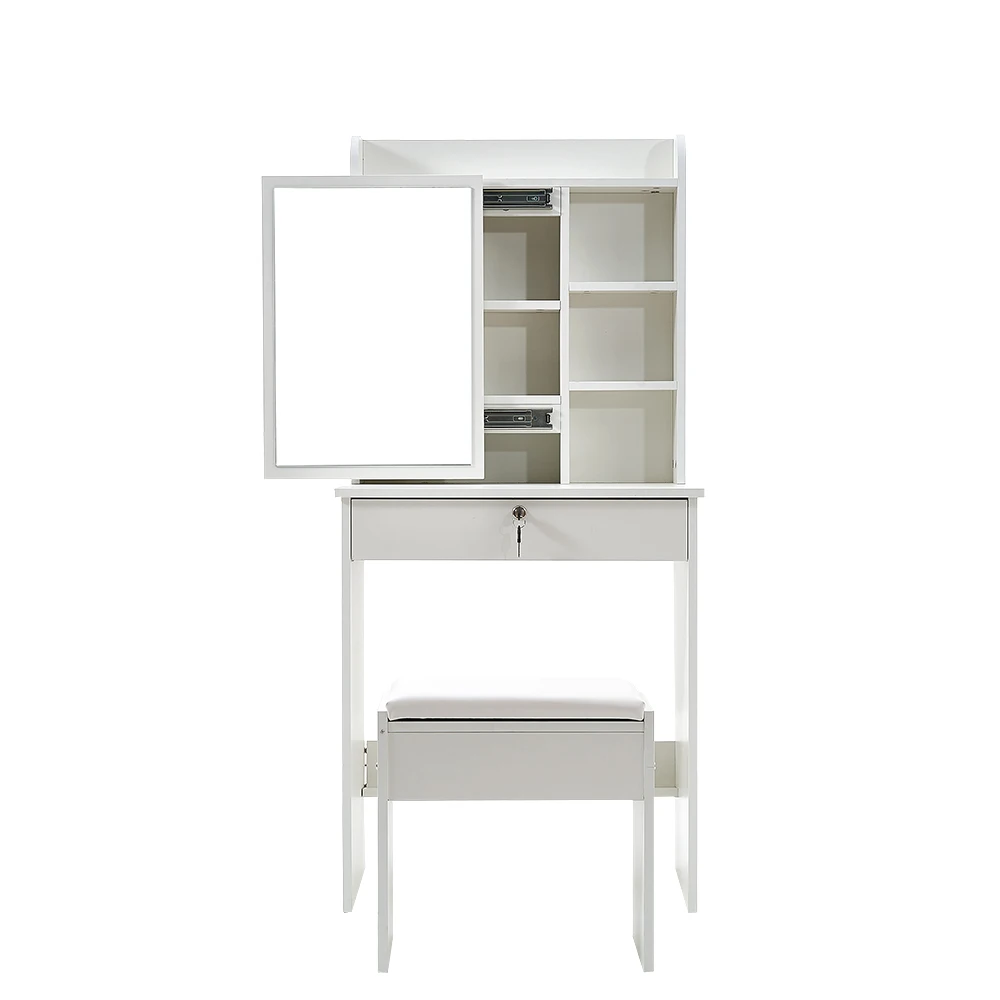 Modern Combination Dressing Table Sliding Mirror Adds Cosmetics Storage Space with stool Makeup Table White