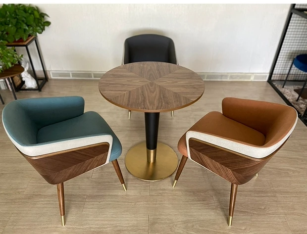 Modern Leisure Dining Chairs Simple Creative Ins Home Furniture Nordic Restaurant Solid Wood Chair Leather Art Backrest Stool