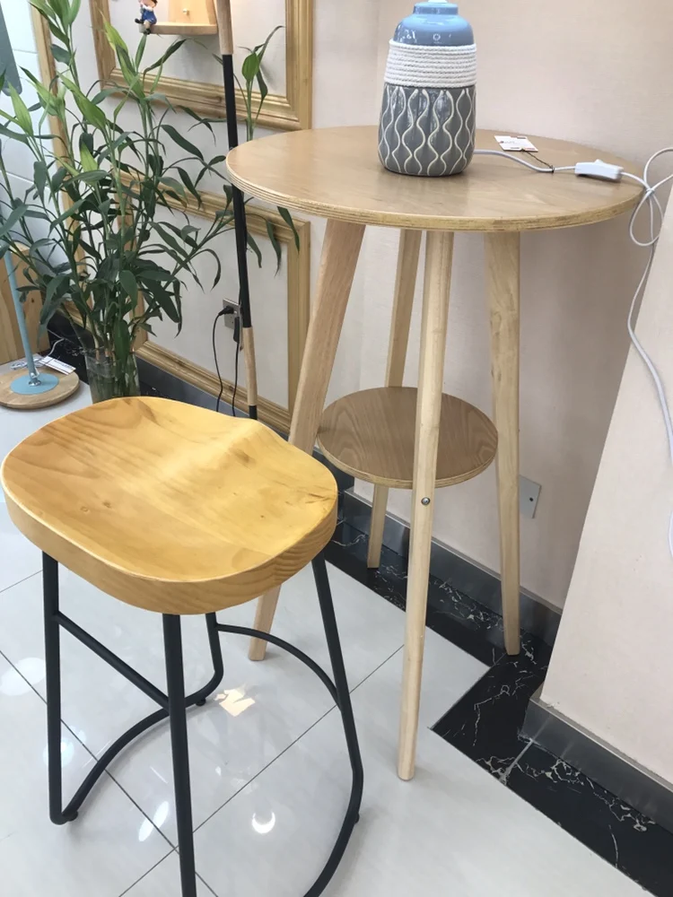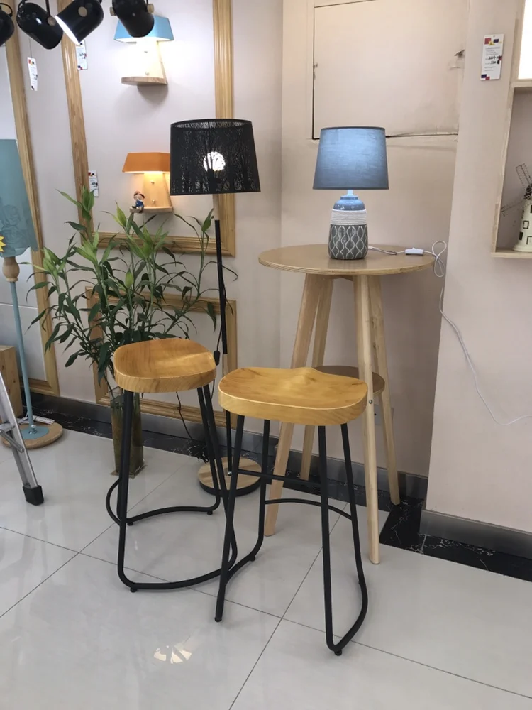 H Modern simple iron foot stool surface solid wood bar stool home high chair coffee shop cold drink shop bar stool