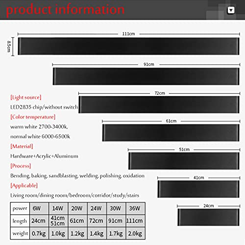Moderna applique da parete a LED Lampade da 9/16/20/24/28/36/44 pollici LED da bagno Vanity Bath Light Bar Applique da parete nera per soggiorno Camera da letto Corridoio,WhiteLight-14w/51cm