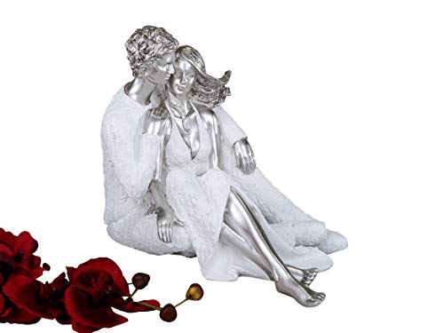 Moderna e esclusiva Scultura COPPIA in ceramica bianca/argento altezza 27 cm