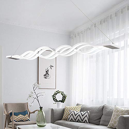 Moderna lampada a sospensione LED 80 W, dimmerabile con telecomando, Appeso Lampade bianca metallo e acrilico, design ondulato, per soggiorno, camera da letto, sala da pranzo