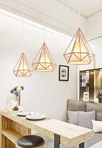 Moderna Lampada a Sospensione Paralume in Metallo,E27 Lampadario Vintage Gabbia a Forma Diamond in Oro Rosa Creative Decorative