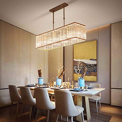 Moderno Lampadari Di Cristallo Lusso Chiaro K9 Chandelier Elegante Apparecchio Per Plafoniere Illuminazione Rettangolare A Filo Cromato Pendente Per Sala Da Pranzo Li-Oro E Cristallo 85 Cm