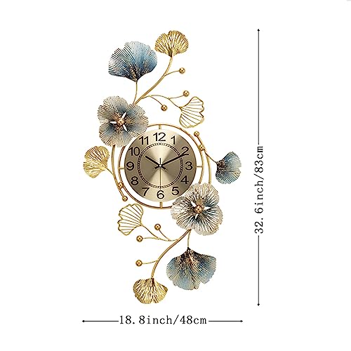 DECORAZIONE DELL'OROLOGIO DA PARETE: forgiato con materiale lron, ha un forte effetto 3D, forma ginkgo biloba, curve vivaci e linee morbide, stile stratificato e chiaro, invecchiato per aggiungere un tocco di lusso discreto alla tua casa.