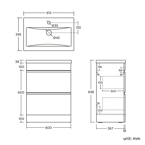Il set comprende: unità Vanity, lavabo in ceramica, accessori e istruzioni