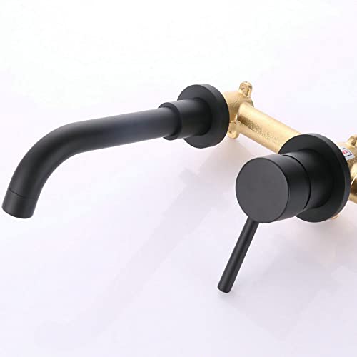 Moderno Rubinetto Bagno Montato A Parete Nero Opaco 360 ° Girevole Rubinetti Vasca da bagno per Parete 2 fori Montaggio Singolo Maniglia Rubinetto Ottone Leekayer