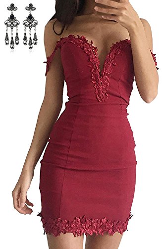 MODETREND Donna Vestiti Scollo a V Cuciture Pizzo Abito Senza Spalline Abiti Vestito da Matrimonio Banchetto Sera